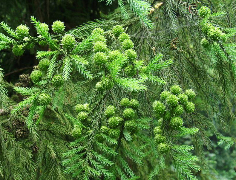 生態(tài)習性 性喜光,略耐蔭,忌風,其適應環(huán)境與杉木要求相似。喜溫暖濕潤氣候,要求土層深厚、酸性、排水良好的土壤。在空氣濕度大的高山地區(qū)生長更好。不耐嚴寒和干旱、瘠薄的環(huán)境,在空氣濕度小的低山丘陵生長極差,幼樹常提前開花結(jié)實。柳杉對二氧化硫的抗性較強。