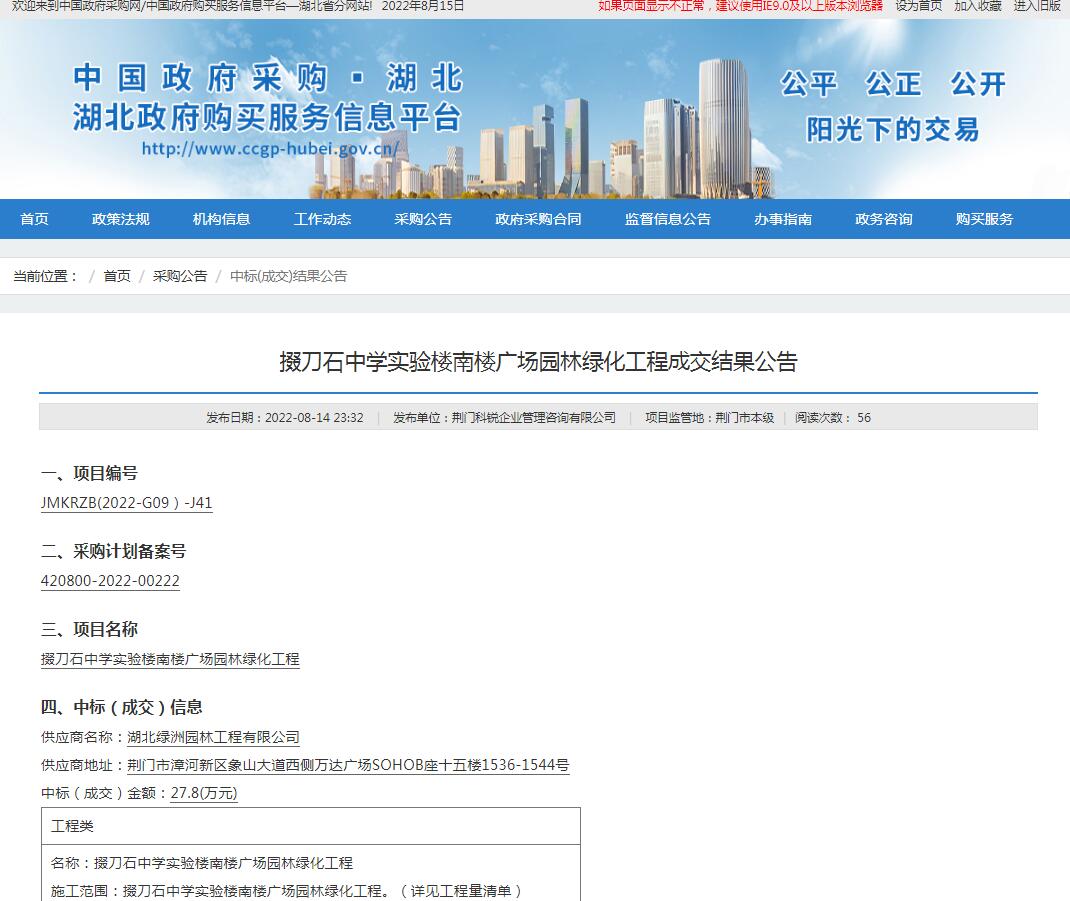 掇刀石中學(xué)實(shí)驗(yàn)樓南樓廣場(chǎng)園林綠化工程中標(biāo)結(jié)果公告