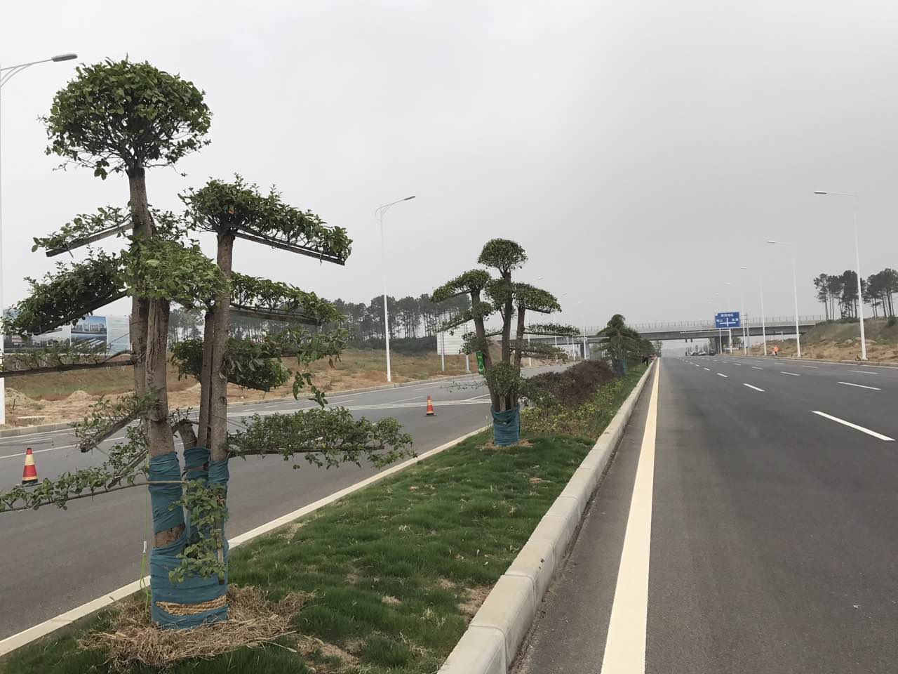 該合同段總長5.32km,總綠化面積20.5萬㎡,中分帶最寬處達(dá)12m,兩側(cè)基礎(chǔ)綠帶單邊最寬處達(dá)20m,平均綠化帶寬度38.62m。項(xiàng)目投資約為3596萬元,市委市政府計(jì)劃將這條干道打造成襄陽市最美景觀綠化帶。目前工程已完成90%,剩余10%的工程量是特地為峪山收費(fèi)站出口預(yù)留的2萬㎡的兩側(cè)基礎(chǔ)綠帶,準(zhǔn)備重新優(yōu)化設(shè)計(jì),屆時(shí)景觀效果將得到進(jìn)一步提升。