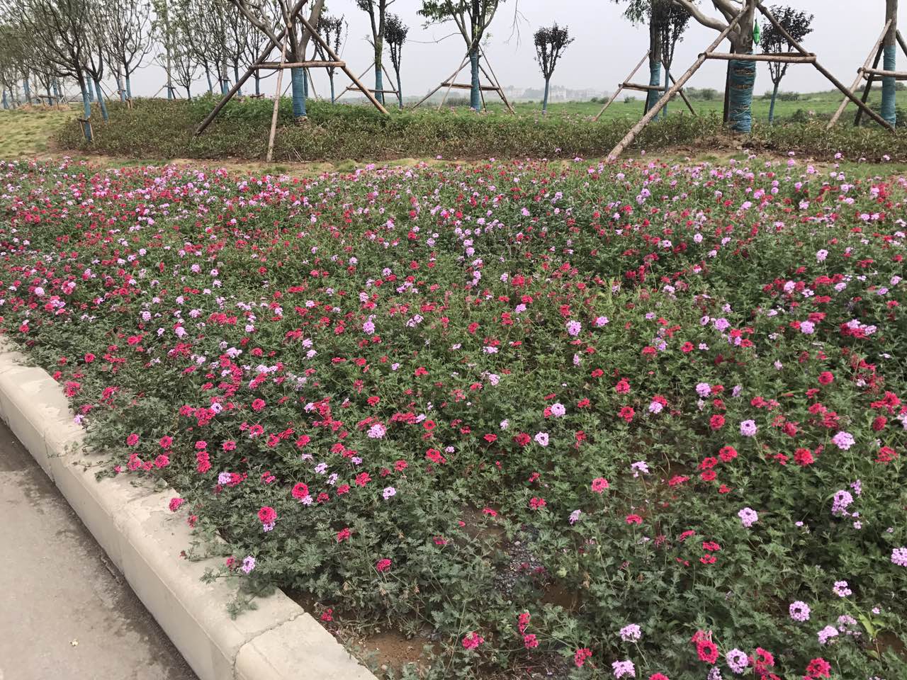2017年6月23日,公司總經(jīng)理吳訓(xùn)虎帶領(lǐng)工程部、財(cái)務(wù)部相關(guān)人員前往襄陽市內(nèi)環(huán)南線東延段(現(xiàn)代大道-峪山互通段)道路綠化和襄陽市中環(huán)線(仇家溝-石灣互通)道路綠化施工現(xiàn)場(chǎng)檢查指導(dǎo)工作。 上午10時(shí)許,夏至?xí)r節(jié)的陽光有點(diǎn)灼熱,空氣中彌漫著鮮花的清香,兩臺(tái)20t的水車正來回澆水,峪山收費(fèi)站外的中分帶剛栽植的大葉女貞樁景蒼勁挺拔;造型優(yōu)美的大規(guī)格樸樹、三角楓、香樟、欒樹、廣玉蘭似哨兵把守在地勢(shì)開闊、連綿起伏的基礎(chǔ)綠帶兩側(cè);形態(tài)各異的高品質(zhì)桂花、櫻花、紅楓、紅葉李、壽星桃等或點(diǎn)綴、或組團(tuán)、或矩陣式栽植在寬闊的中分帶上。美麗的格?;ā⒅匕昝琅畽?、德國鳶尾和月季競(jìng)相開放。